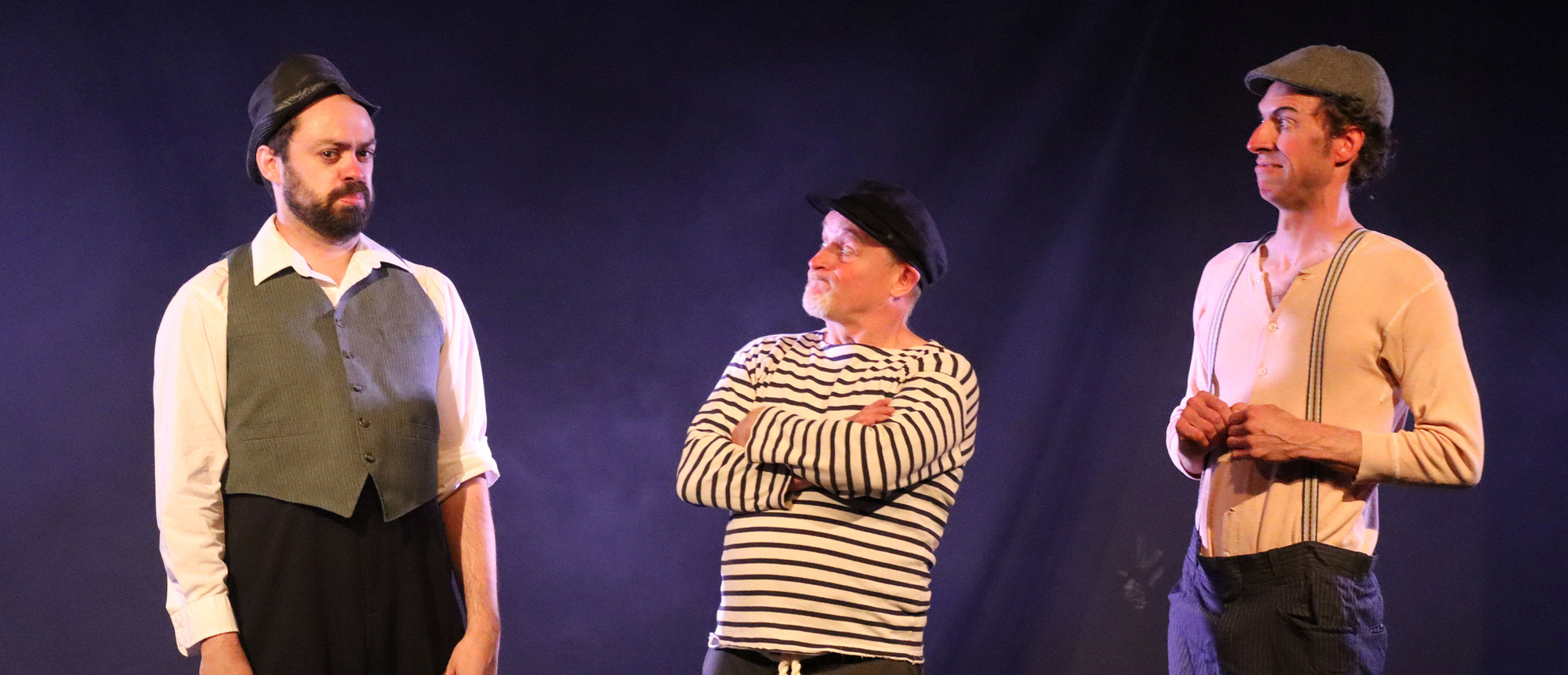 This quirky and hilarious trio of physical theatre clowns use their solid relationship to effectively immerse you in their world. Conspiring with the audience, they use physical expression, mime, and vocal sound effects to take spectators on a journey from the boarding platform… to the pitfalls brought on by their fragile egos! Their misfortunes, both funny and touching, lead them to discover what it means to depend on each other.