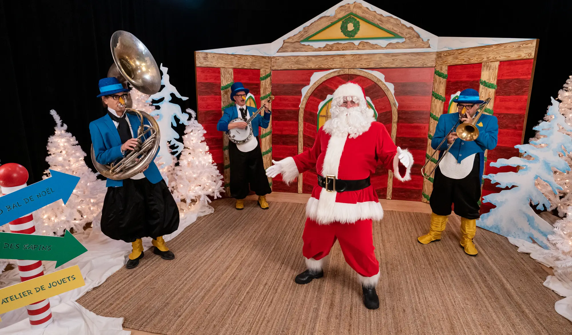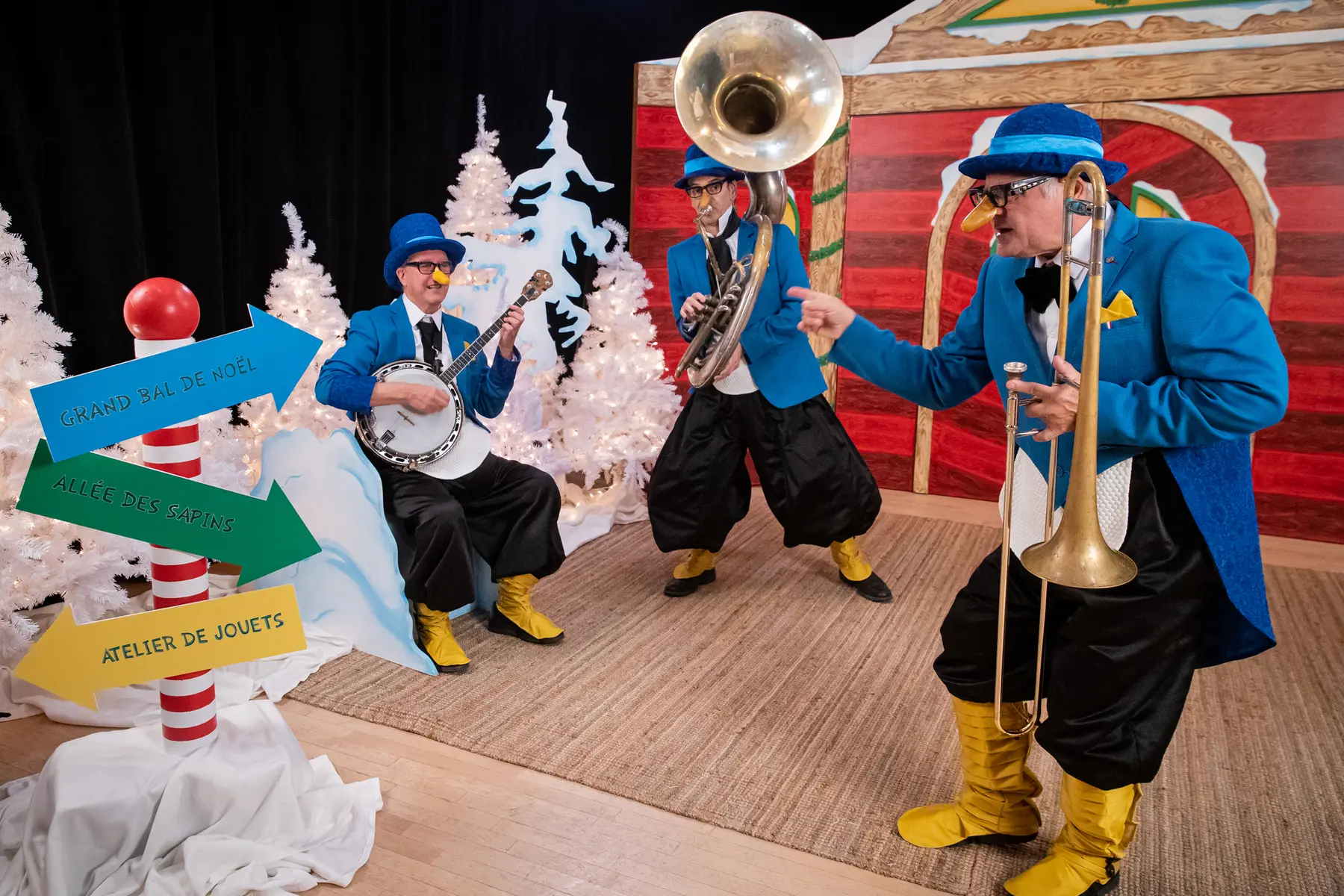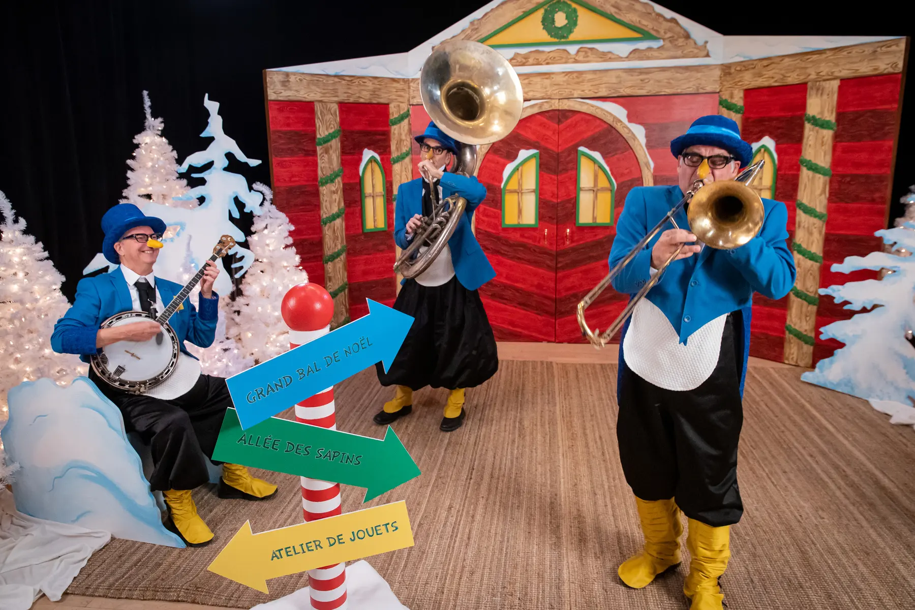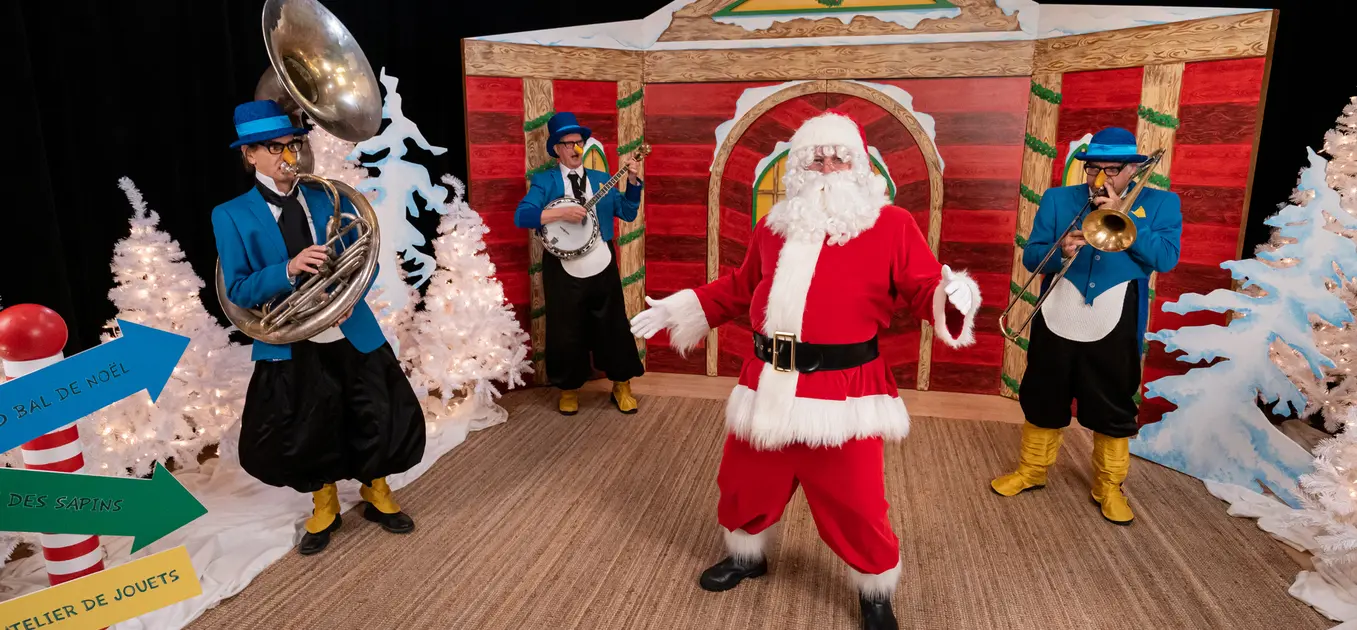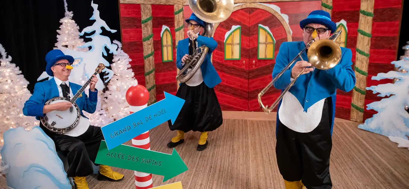 Experience the magic of the holiday season in this zany concert that gets children to sing along and help create a song. From their far-off ice floe, strutting along sideways, three musical penguins make their way to the festivities at the North Pole. To join the celebration, they will need to compose an original Christmas song in just a few minutes. Will Amatin, Ademain, and Atemplein find their inspiration? Can they be ready in time for this unforgettable evening?