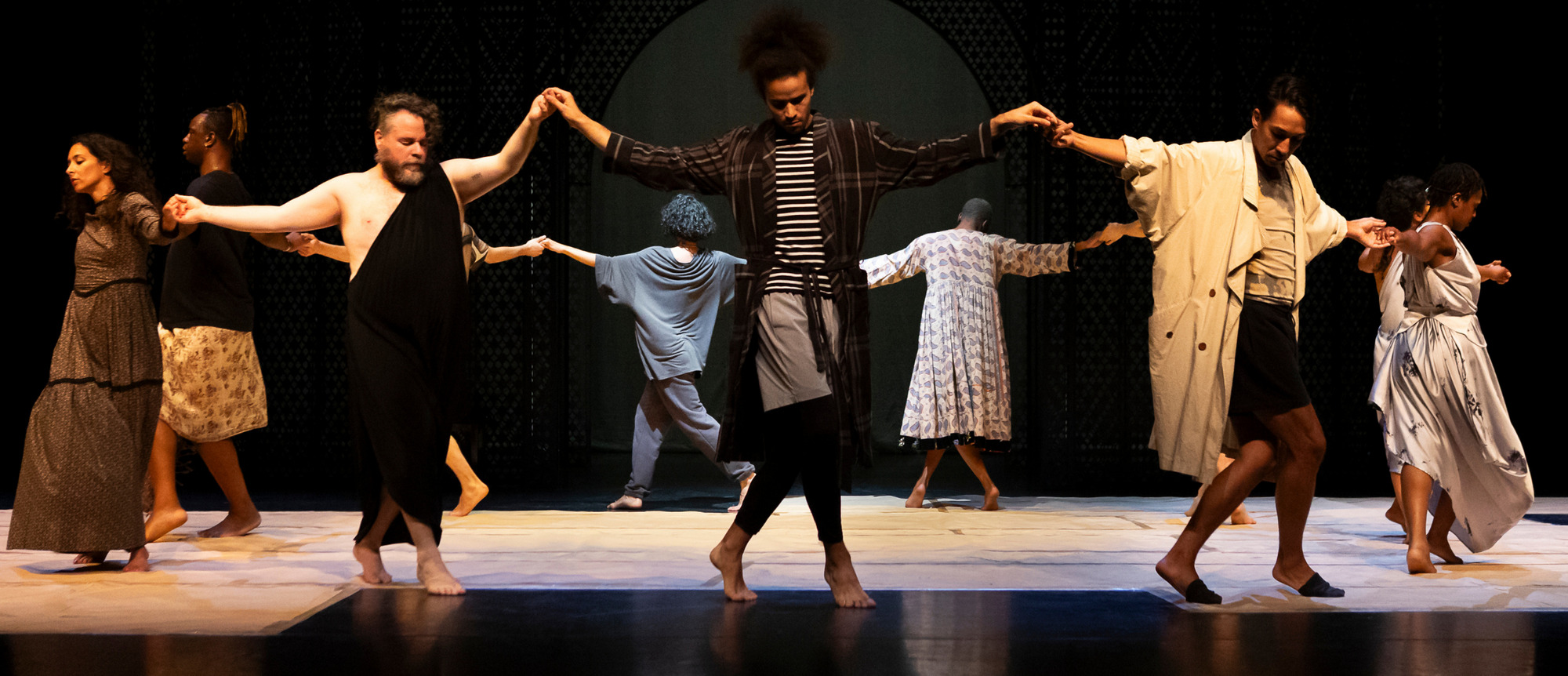 A flurry of costumed figures appear in procession, a motley crew united by this dance that blurs boundaries, mixes origins, and conflates eras. Taking the audience on a thrilling musical journey, Harrell and his magnificent cast evoke the finesse of Isadora Duncan, the darkness of Butoh, and the energy of a voguing runaway in a sensual ode to freedom.