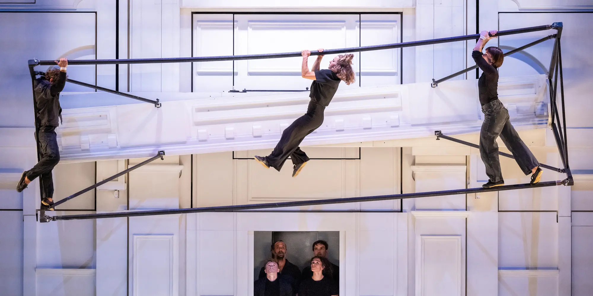 Véritable témoignage sur la condition humaine, la pièce dessine un monde plein d’espoir, de corps qui se meuvent, et propose une mise en lumière des personnes oubliées qui ne demandent qu’à renaître. Conçue comme un film dont les tableaux défilent, elle laisse toute la place aux huit virtuoses qui nous entraînent dans une aventure épique où se mêlent comédie, acrobaties spectaculaires et danse, dans un élan profondément humain et solidaire.