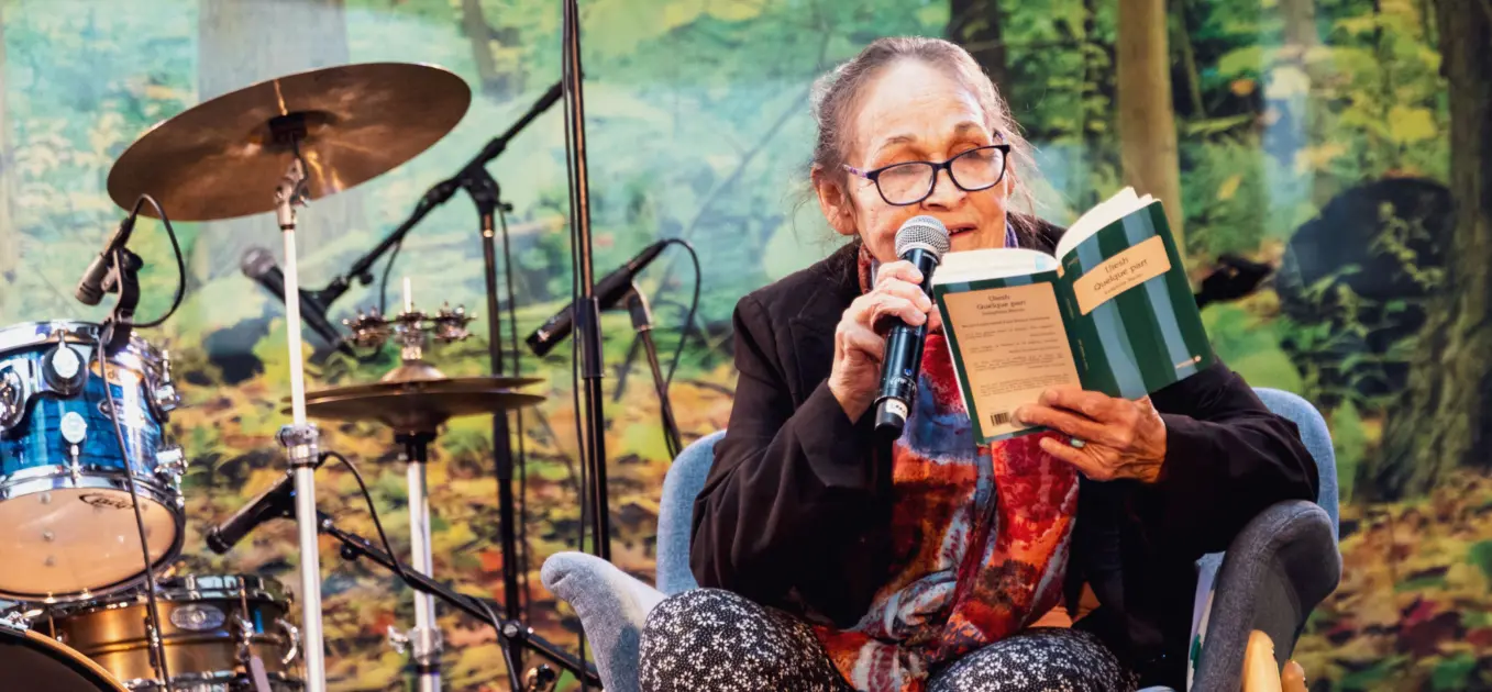 Poète, autrice, chroniqueuse et scénariste membre de la communauté des Pekuakamiulnuatsh, Marie-Andrée Gill présente son nouveau recueil Uashtenamu | Allumer quelque chose et discute avec notre commissaire et cinéaste-documentariste réputée Kim O’Bomsawin.